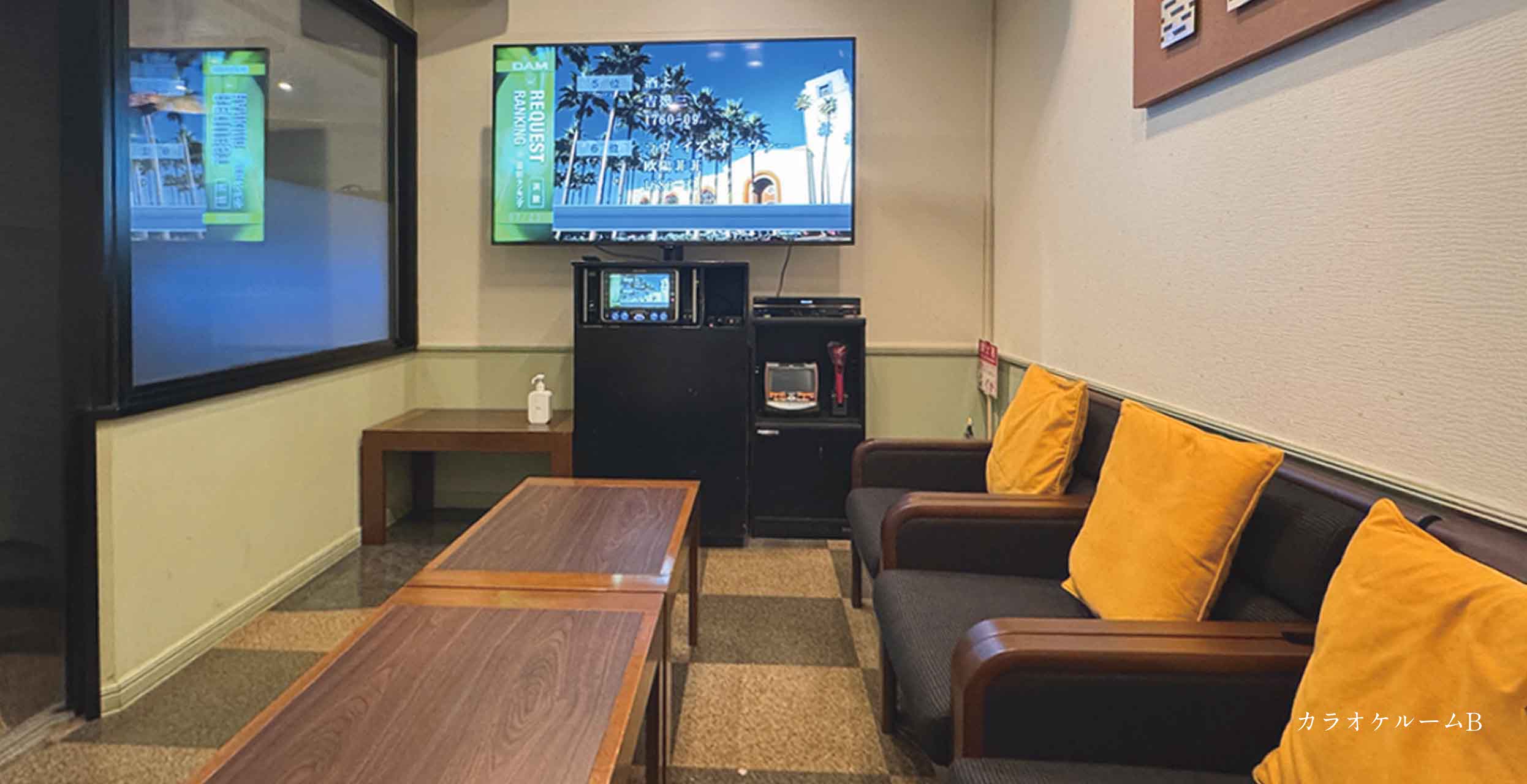 ご利用案内 | カラオケルーム:1室(A・B)6,000円(6名定員)、1室(C)8,000円(12名定員) ・最大8時間歌い放題 ・途中退出OK ・飲食物の持込可(ゴミの分別にご協力下さい) 卓球コーナー:1時間まで無料 【 受付は当日フロント(内線9番)にて承ります 】 |
