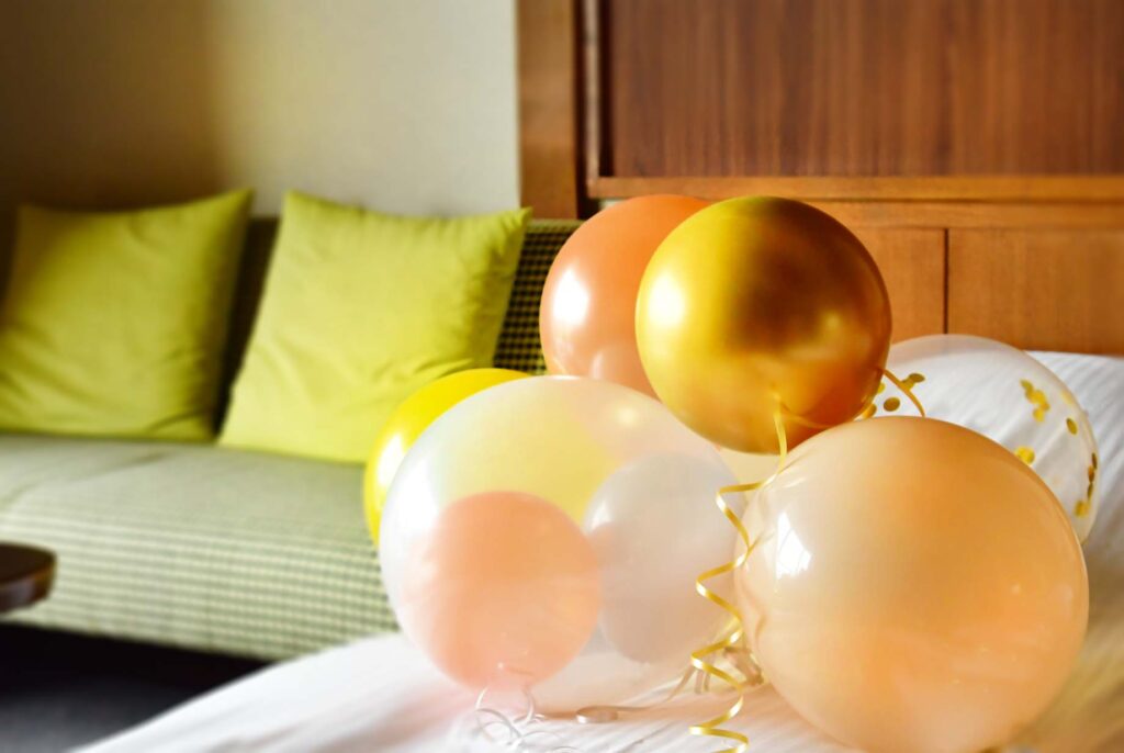 “特別な一日”を彩るお部屋演出。記念日や誕生日など、大切な日のご滞在に合わせて風船や装飾でお部屋を華やかにコーディネート。スタッフが心を込めてご用意いたします。(洋室タイプのみ 1室5,000円)